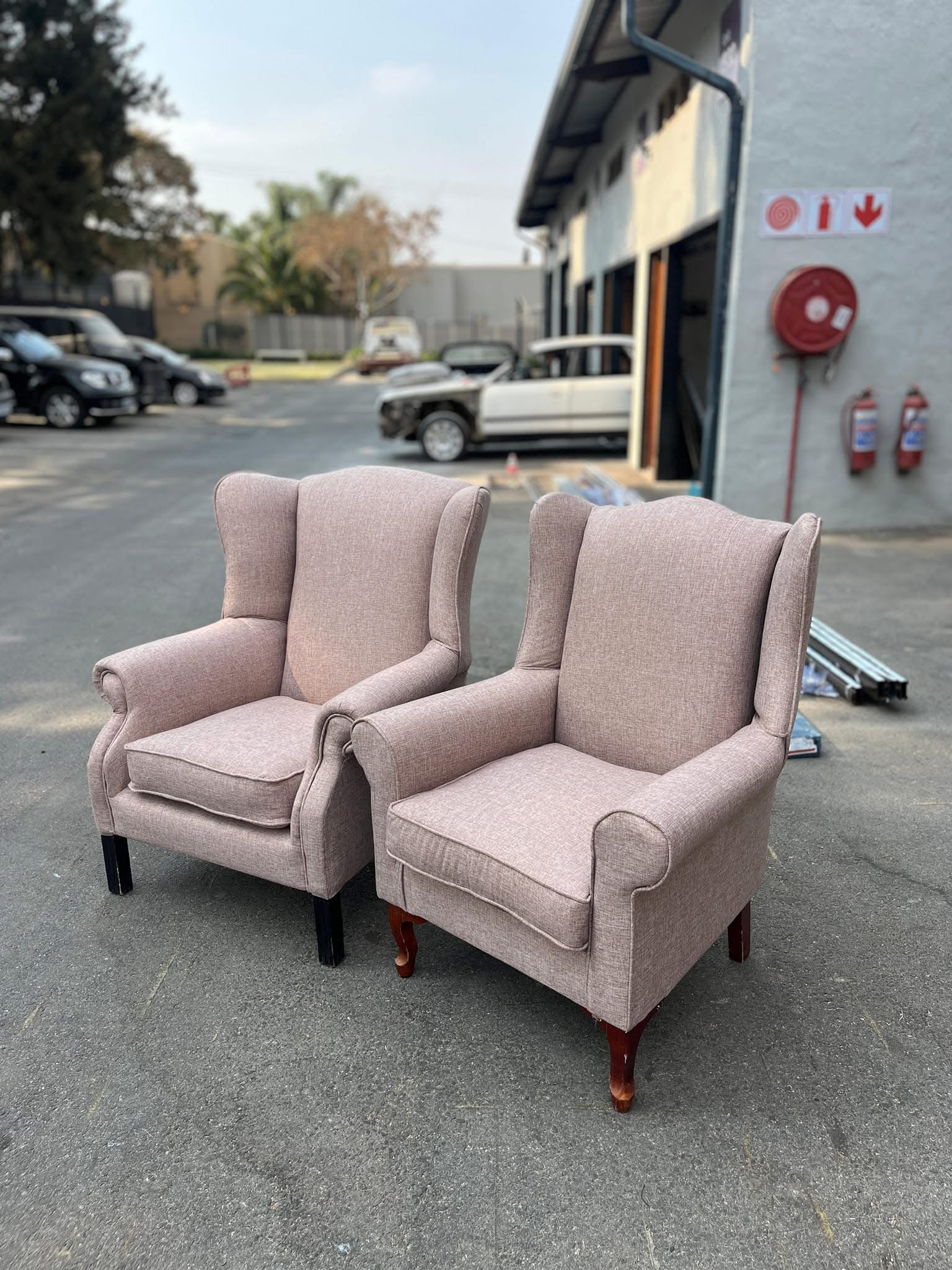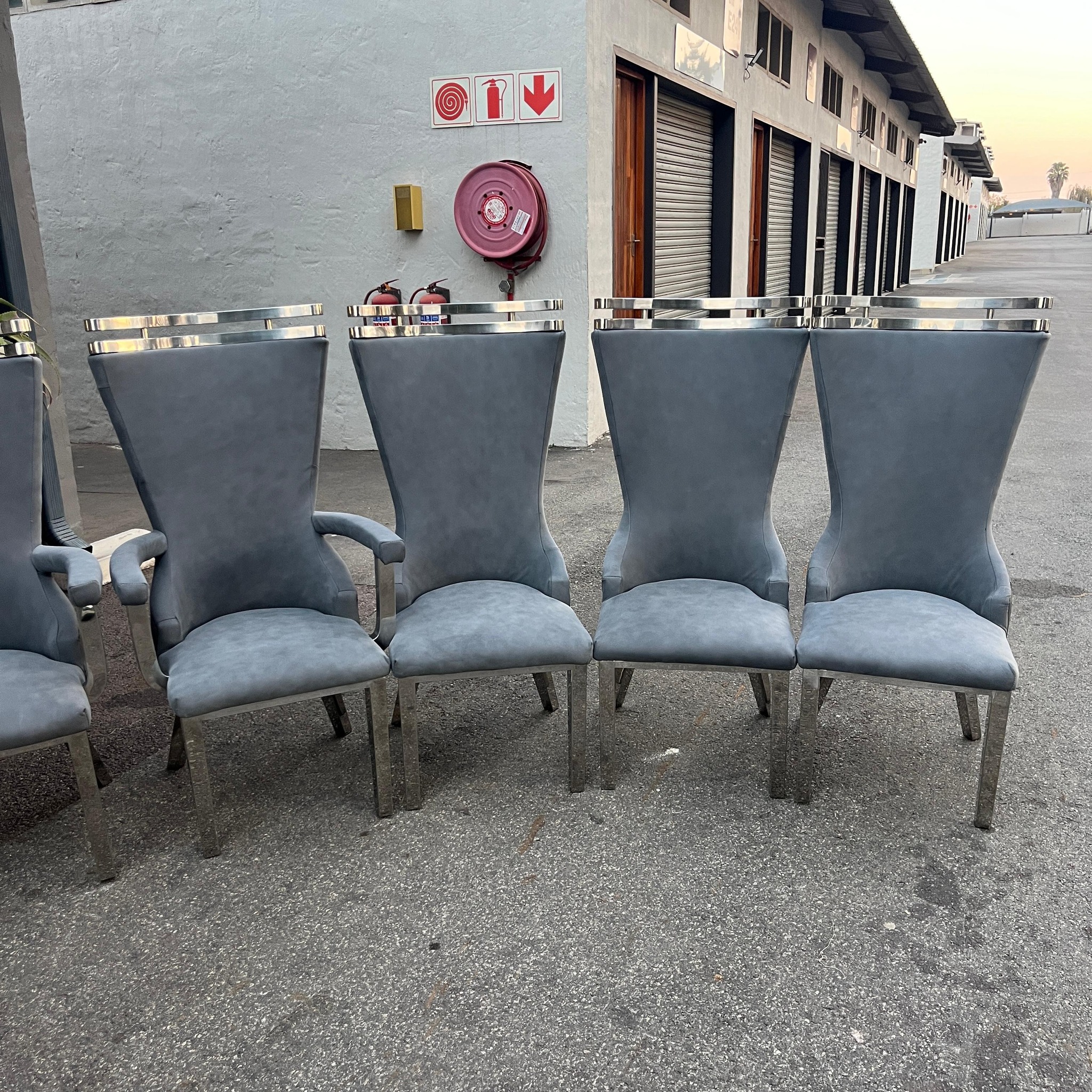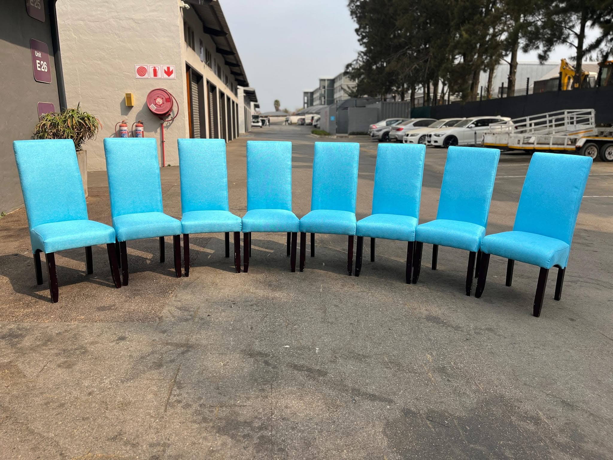 Here is an 8 chair set that we upholstered for a client. He wanted fabric that does not peal and is closest to a color of his other chairs. WE DID IT!!🔥