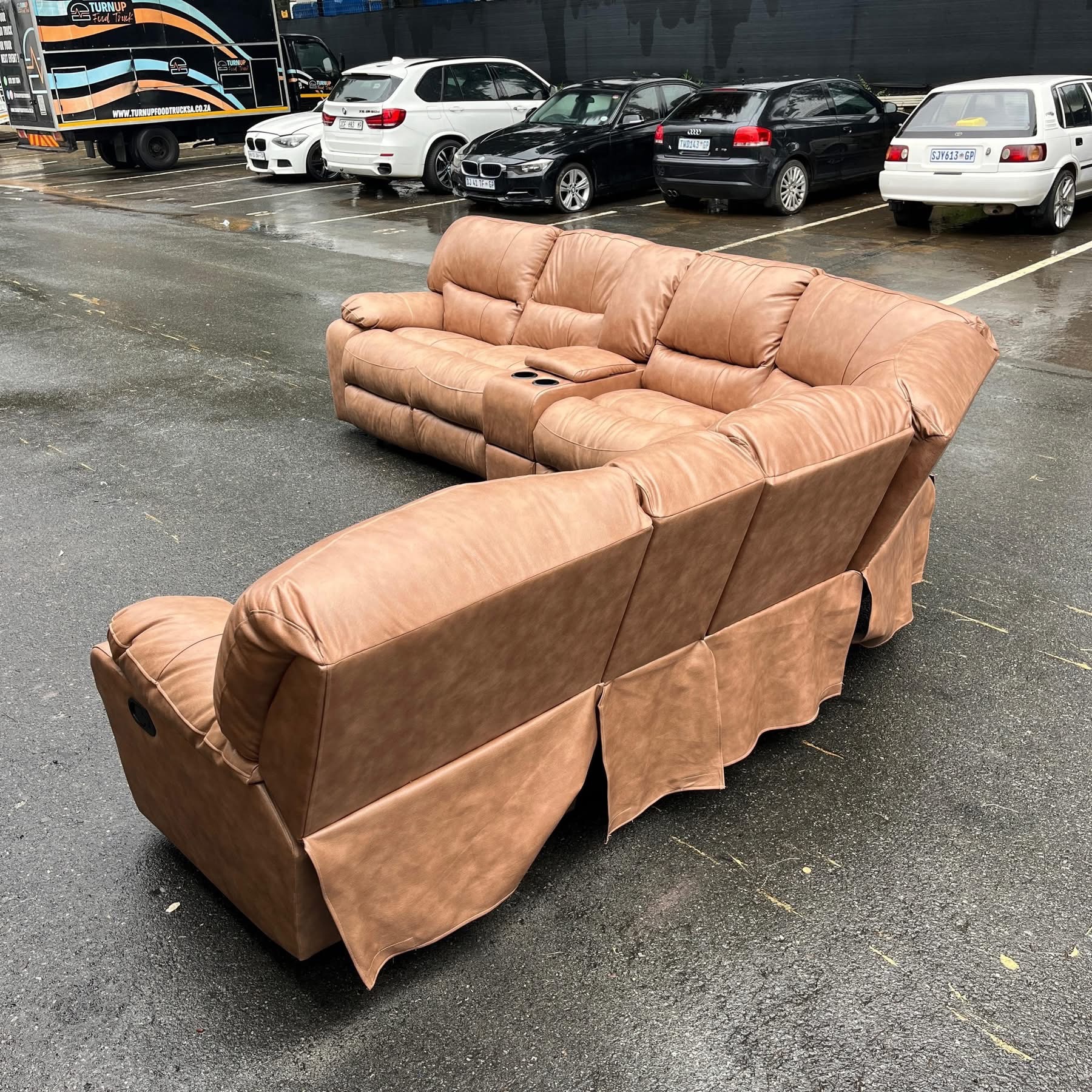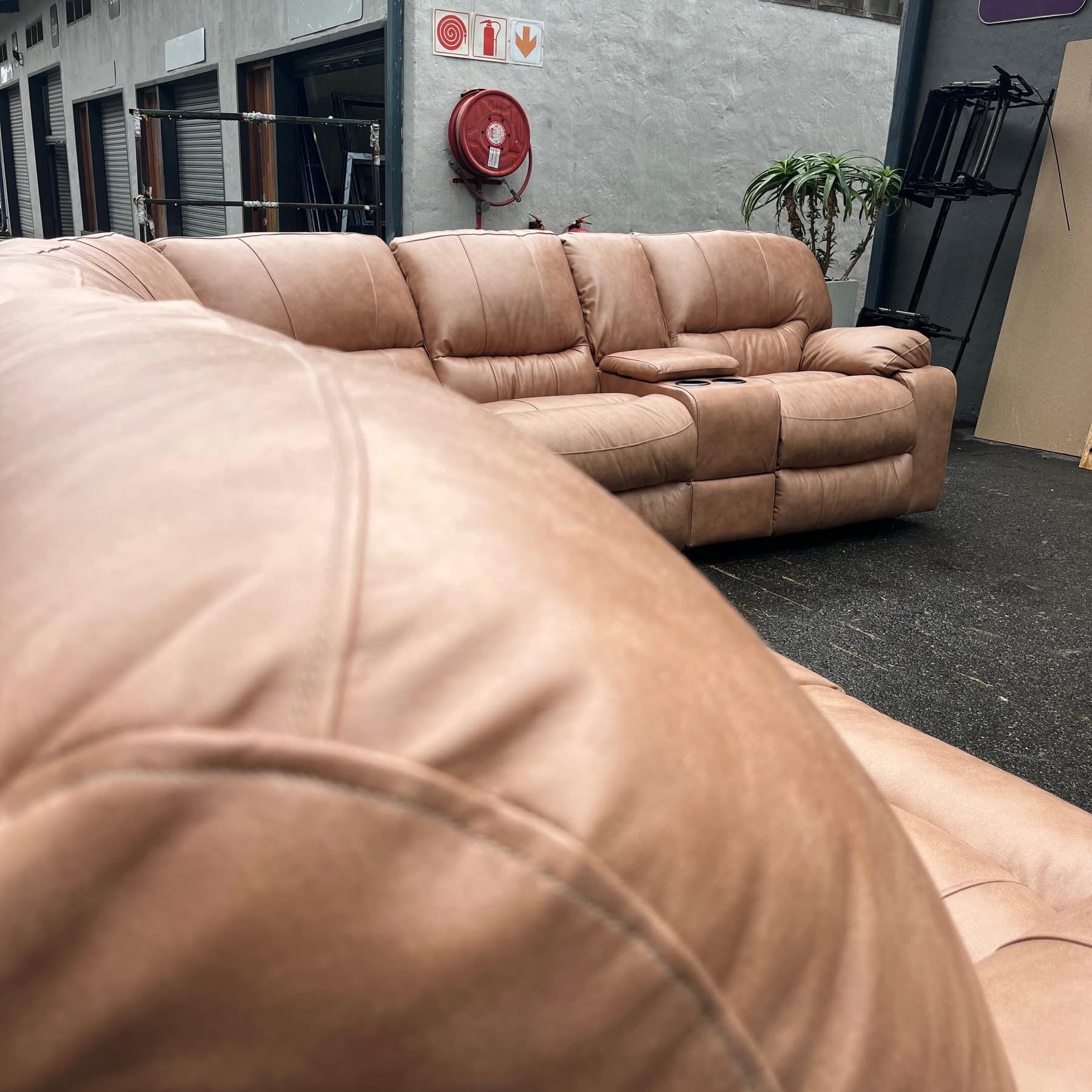 Transform your space with out stunning C-Shaped Recliner! From dated brown to elegent beige buffalo leather, this makeover brings comfort and style to your home ✨️👌