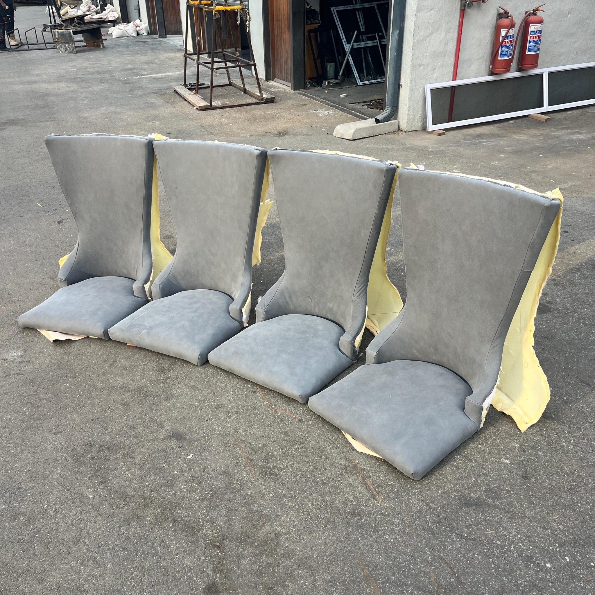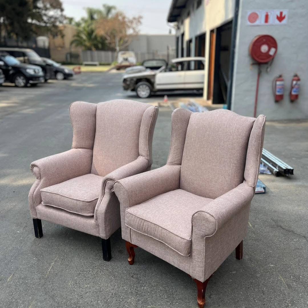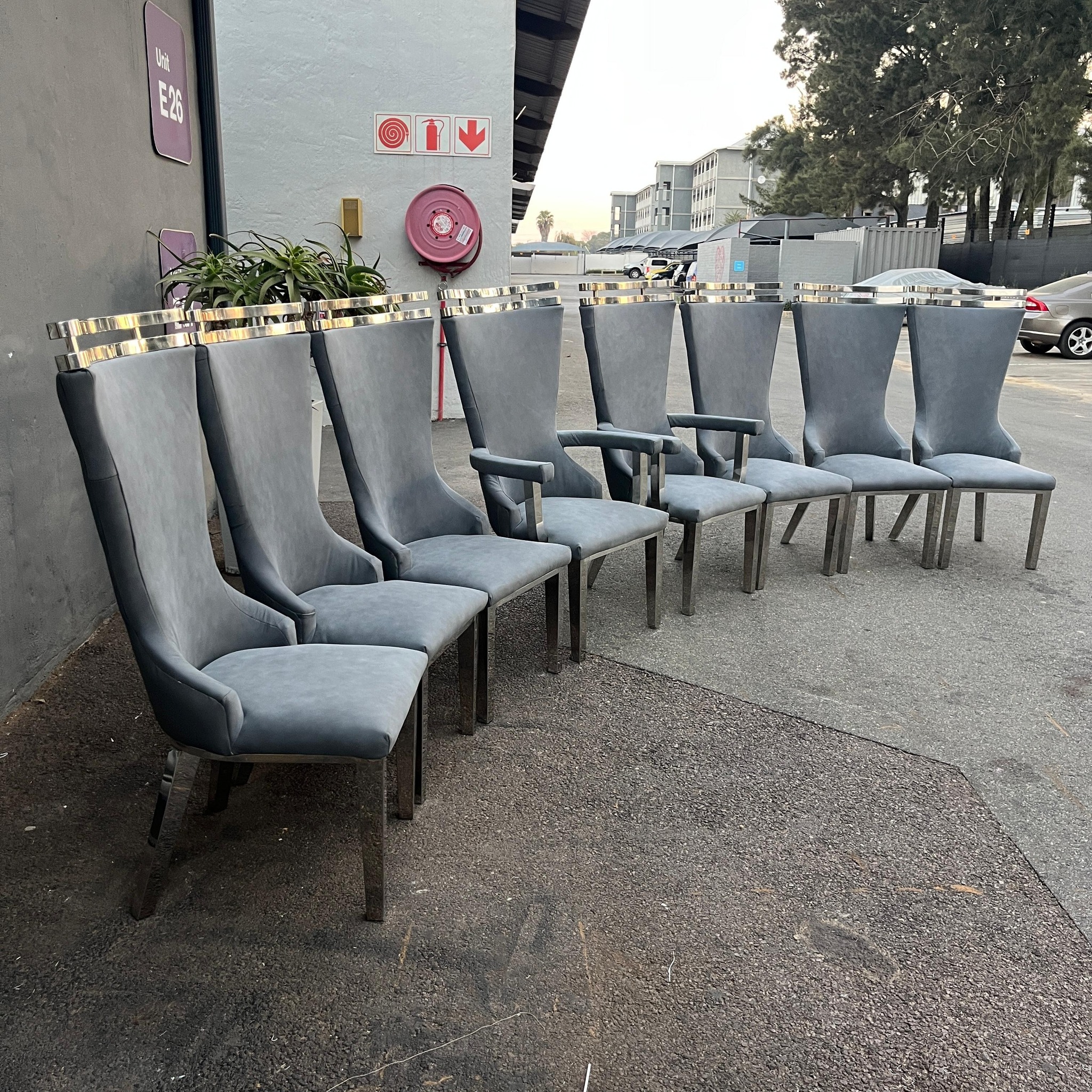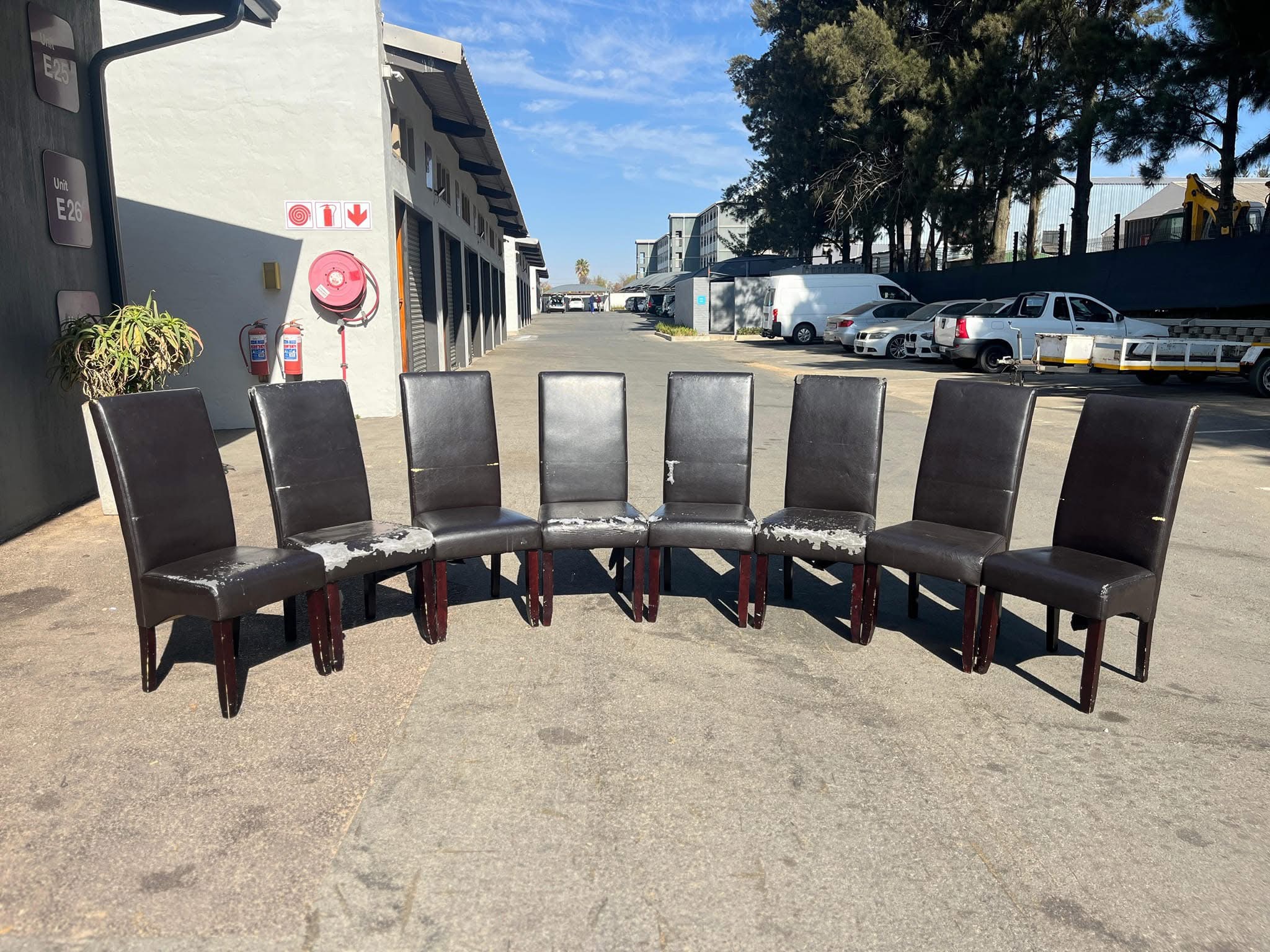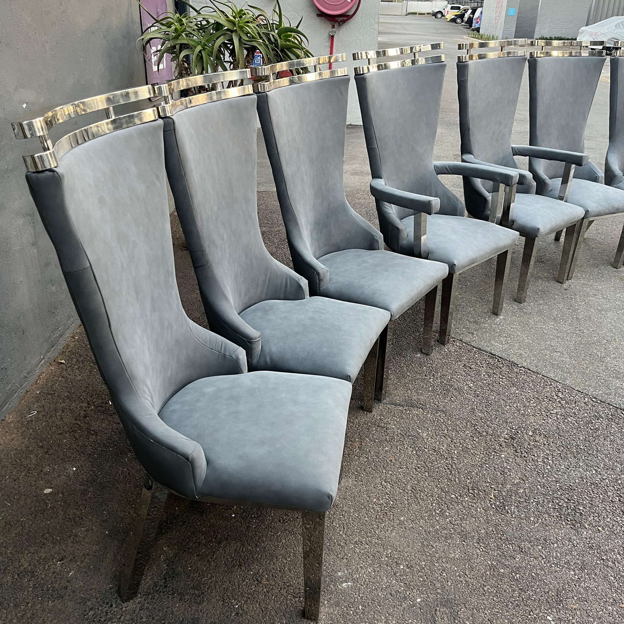 Here is an 8 chair set that we upholstered for a client. He wanted fabric that does not peal and is closest to a color of his other chairs. WE DID IT!!🔥