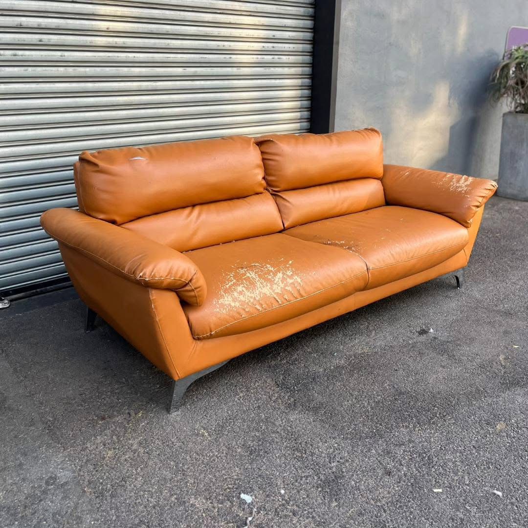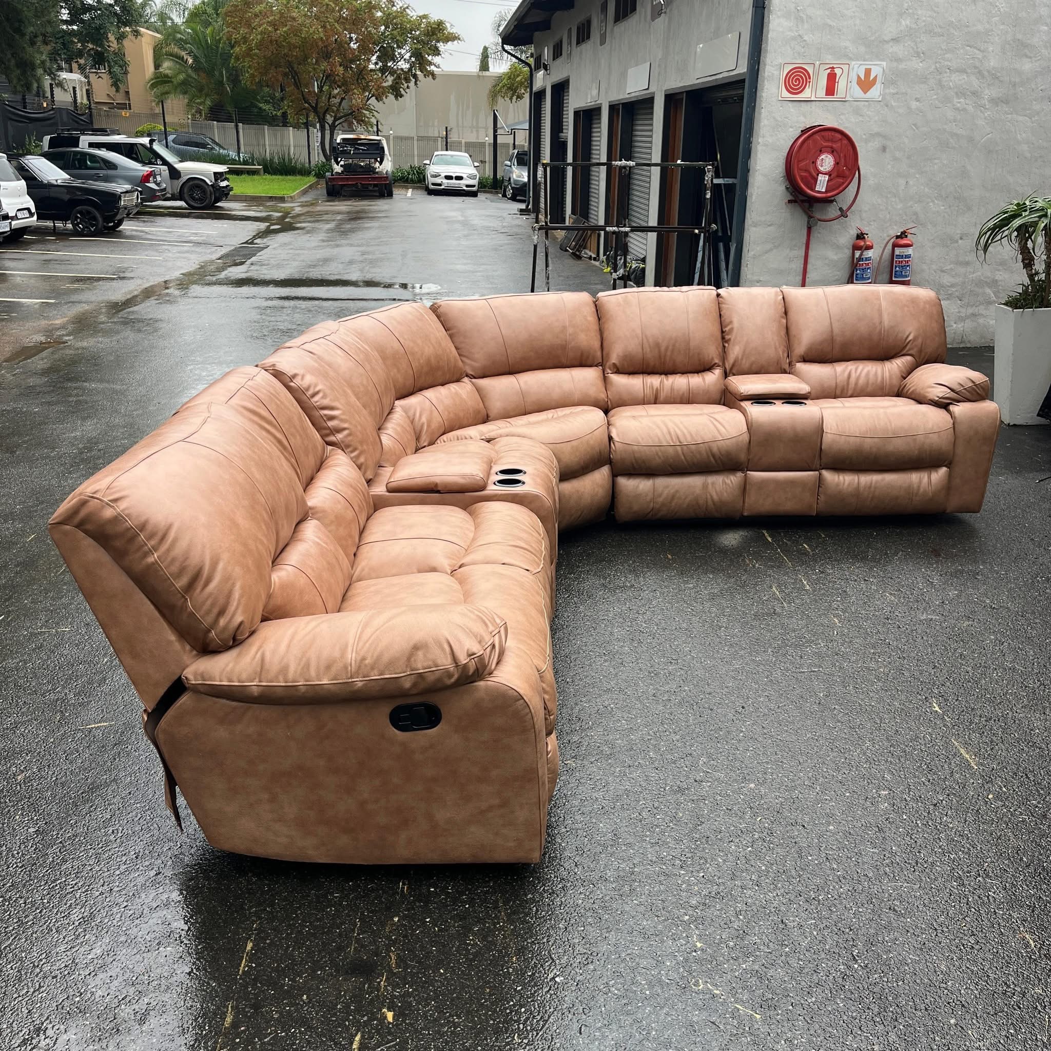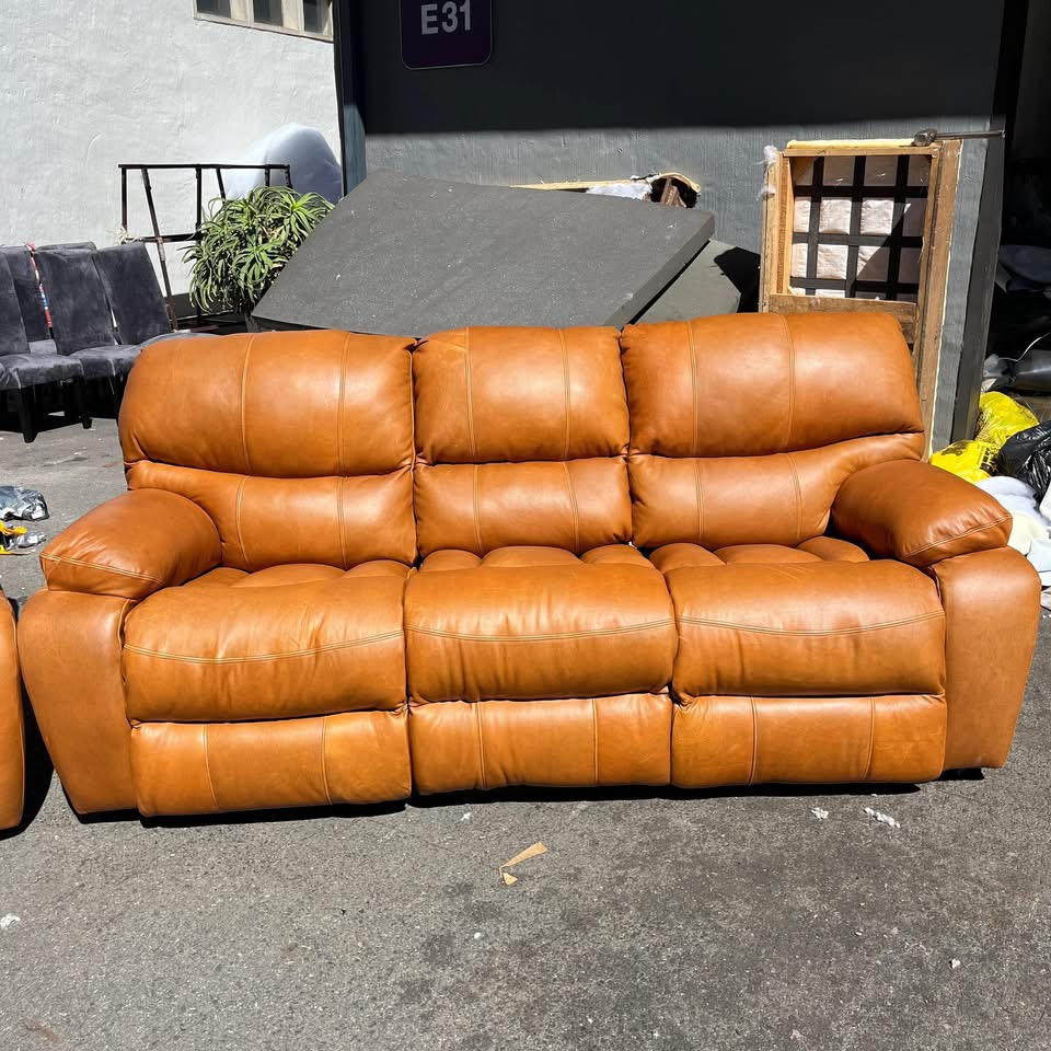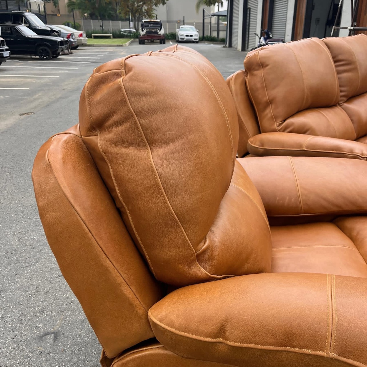 Transform your space with out stunning C-Shaped Recliner! From dated brown to elegent beige buffalo leather, this makeover brings comfort and style to your home ✨️👌