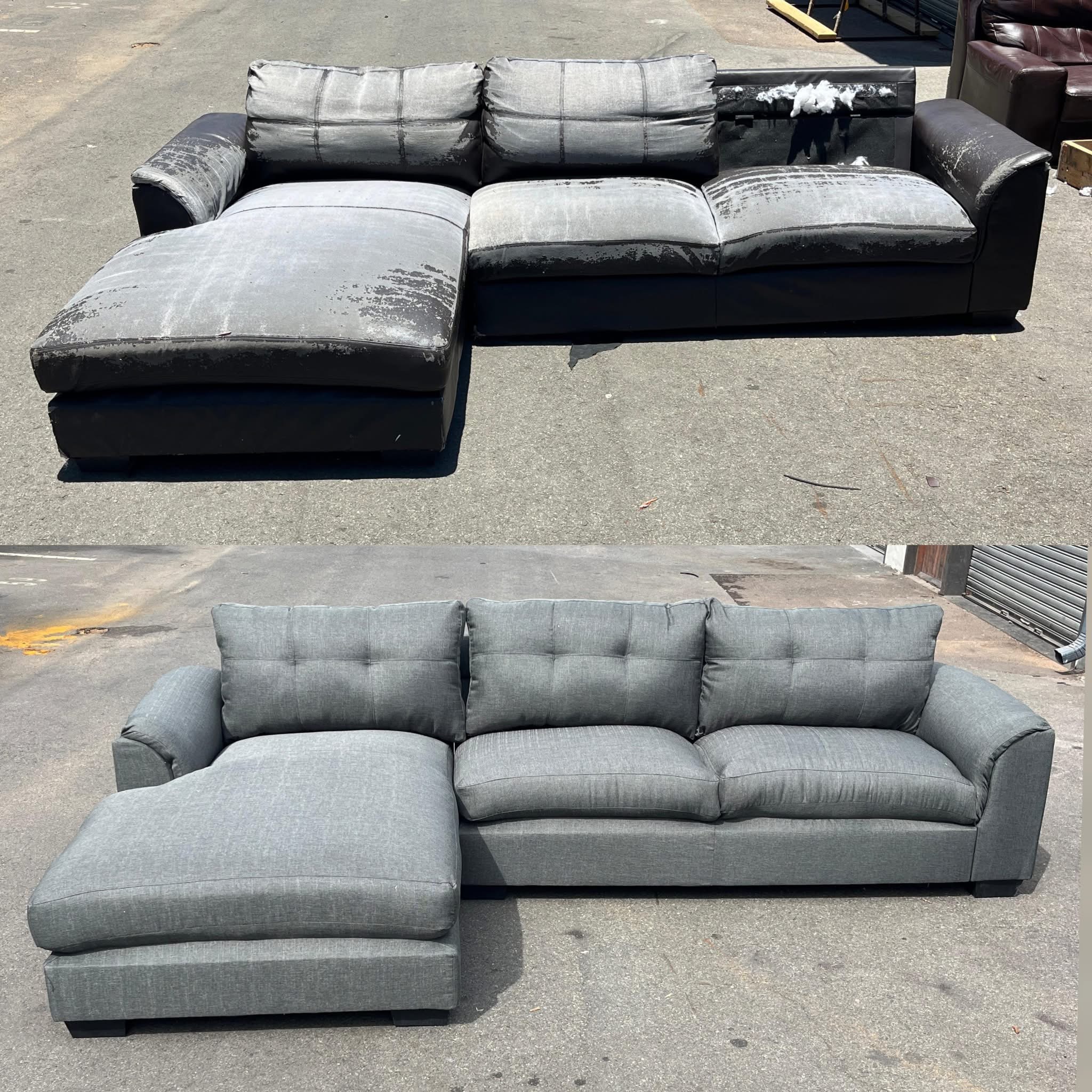 From Worn-Out to WOW!😍✨️. This 3-seater went from old, brown and cracked to sleek and stylish in premium grey leather✨️. A FRESH new look, comfort restored, and ready to impress!